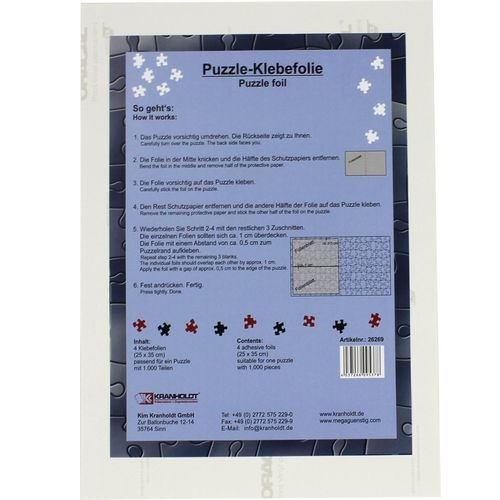 1 Pack mit 4 Folien passend für ein Puzzle mit 1'000 Teilen/ zwei Puzzle à 500 Teile.